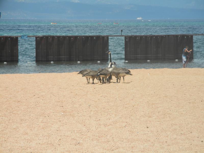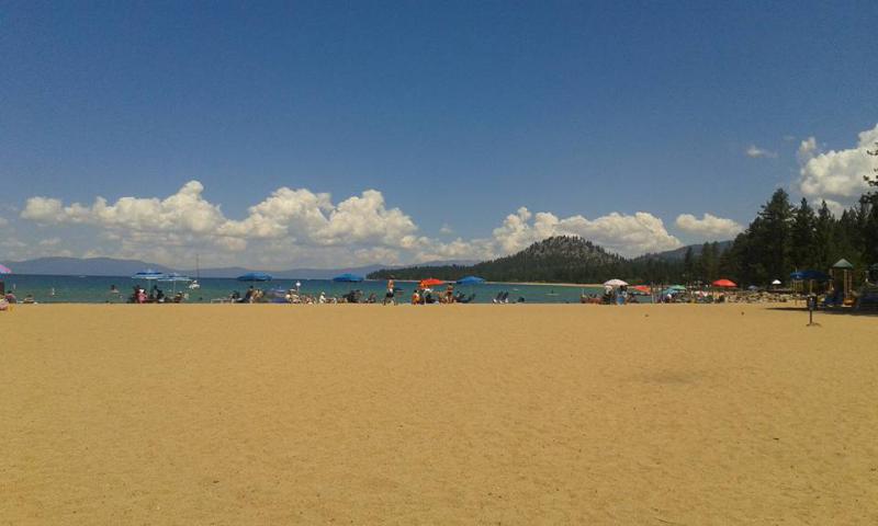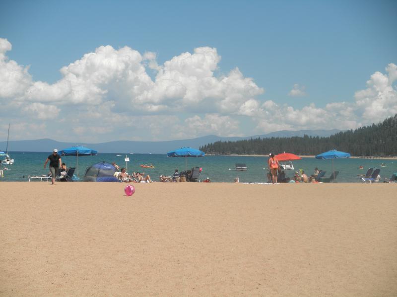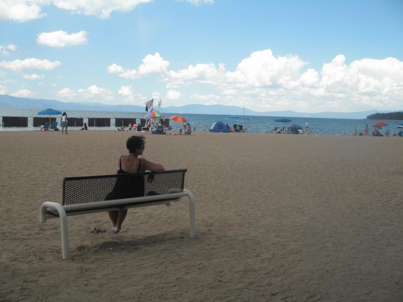 Heute blieb das Auto in der Garage. Vom Hotel erhielten wir einen gratis Zugangspass zum Lake Tahoe (hätte sonst halt ein paar Dollar Eintritt gekostet). Nach wenigen Minuten hatten wir den See erreicht und machten es uns dort gemütlich. Die schöne Aussicht und das perfekte Wetter sorgten für einen angenehmen Strandtag. In der Strandbar kamen wir mit ein paar netten Leuten ins Gespräch.