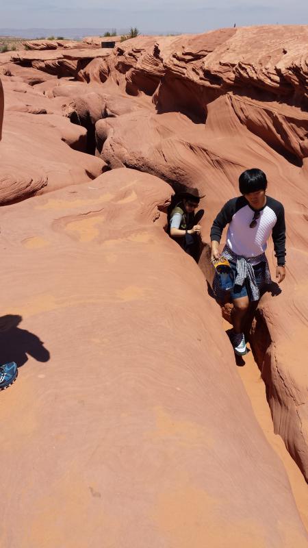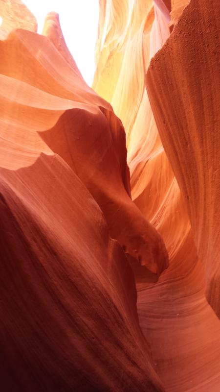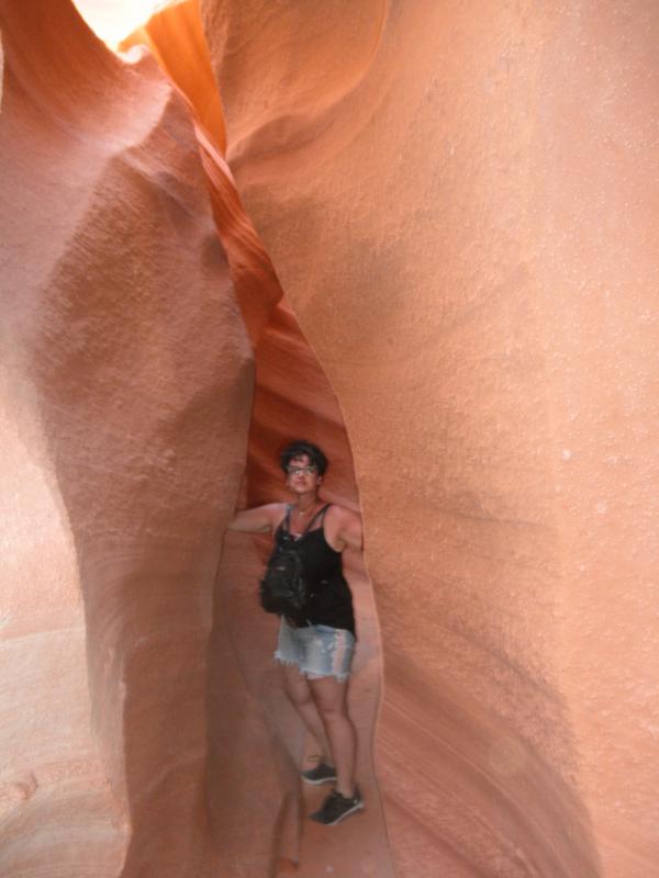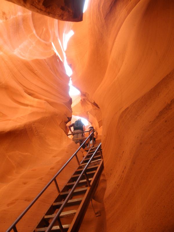 Der Slotcanyon war ein echtes Highlight! Unsere junge Navajo-Führerin lotste uns über mehrere steile Stahltreppen ins Wundereich der Unterwelt. Fantastische Farbspiele in leuchtenden Rot- und Orangetönen ließen die vom Wasser glatt geschliffenen Felsen aussehen, als wären sie nicht von dieser Welt. An jeder Windung des Canyons taten sich neue bezaubernde Anblicke auf. Mit etwas Fantasie konnte man in den Steinformationen mal einen Adler, ein anderes Mal einen Piraten oder wilde Tiere erkennen. Grandios!