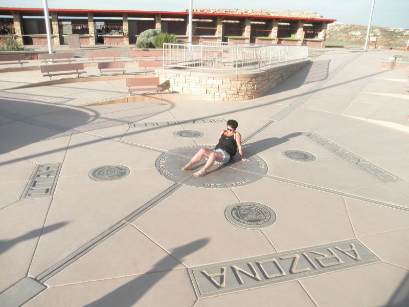 Kurz vor Cortez machten wir noch einen kleinen Abstecher zum Four Corners National Monument. Hier stoßen, in den USA einmalig, 4 Bundesstaaten aneinander: Arizona, Utah, Colorado und New Mexico.